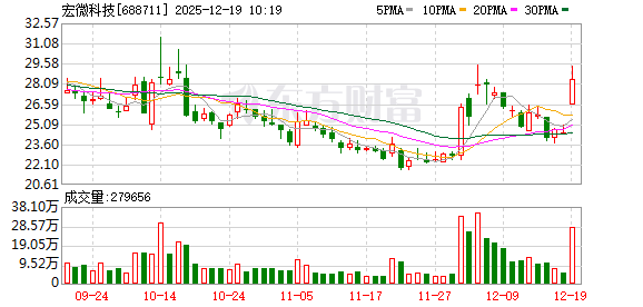 12月19日盘中科创板股宏微科技(维权)涨停,截至09:32,股价报29.38元,成交1.48亿元,换手率2.46%,振幅11.76%。